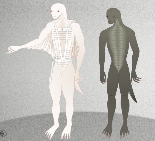 Aj v nich sú prvky plazov. Tu nakreslený unášač a "mrzačák" sa ešte viac podobá na humanoidného plaza, čiže reptiliána: